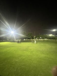 19:00からのプレー開始に合わせ、ナイター照明の下でのゴルフは、昼間とは一味違う雰囲気。